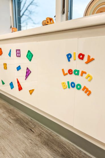 Our peg board, LEGO table, and magnetic wall foster problem-solving skills, hand-eye coordination, gross motor skills, fine motor skills, and cognitive development.